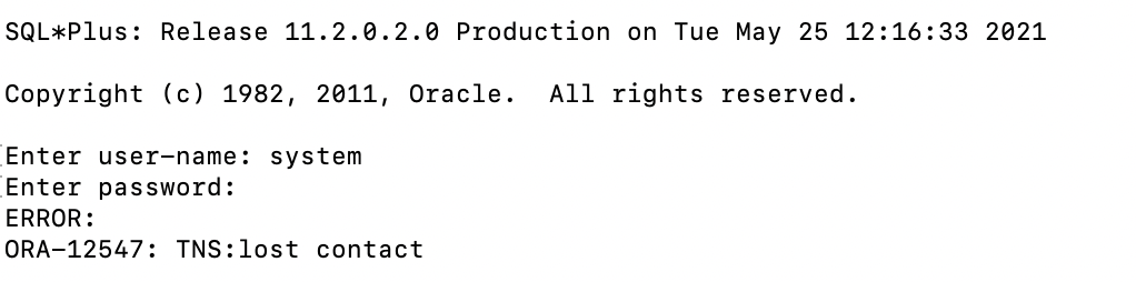 " ORA-12547 TNS:lost contact "