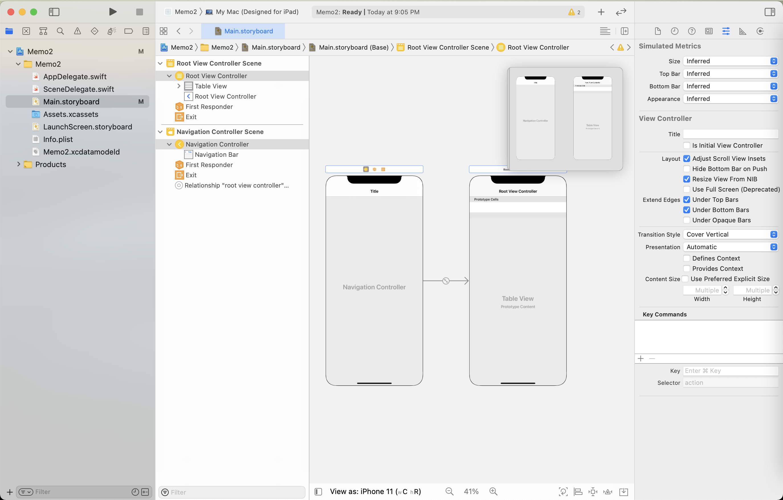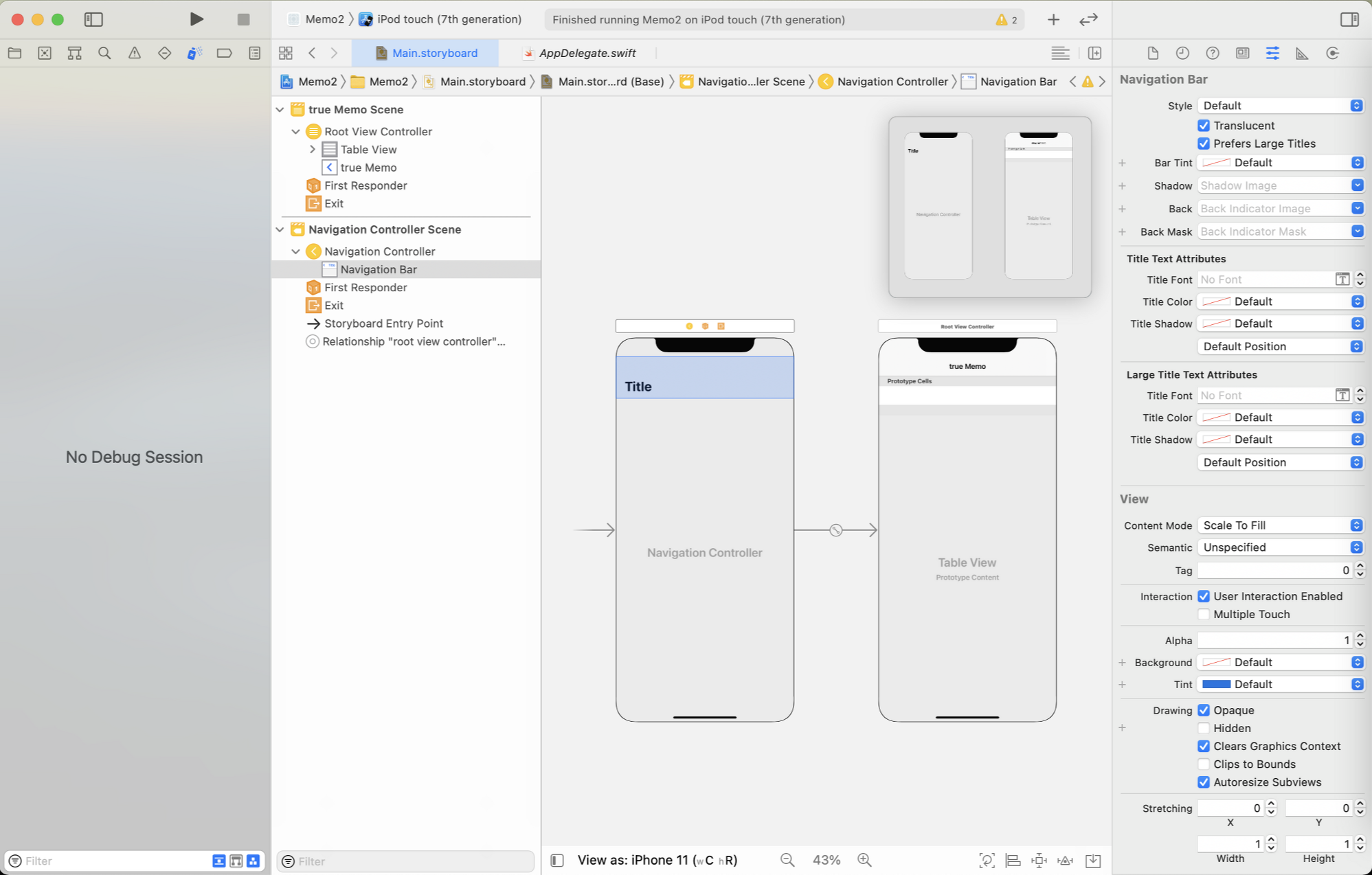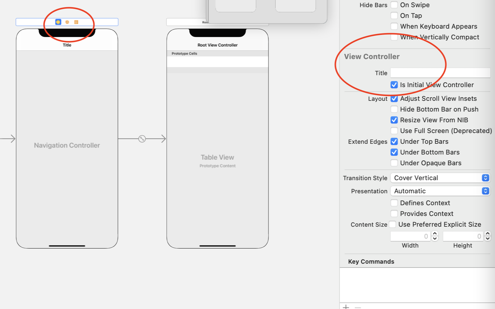 3-2. Navigation Controller๋ฅผ ํด๋ฆญํ๋ค ์ฐ์ธก Is Initial View Controller ์ฒดํฌ