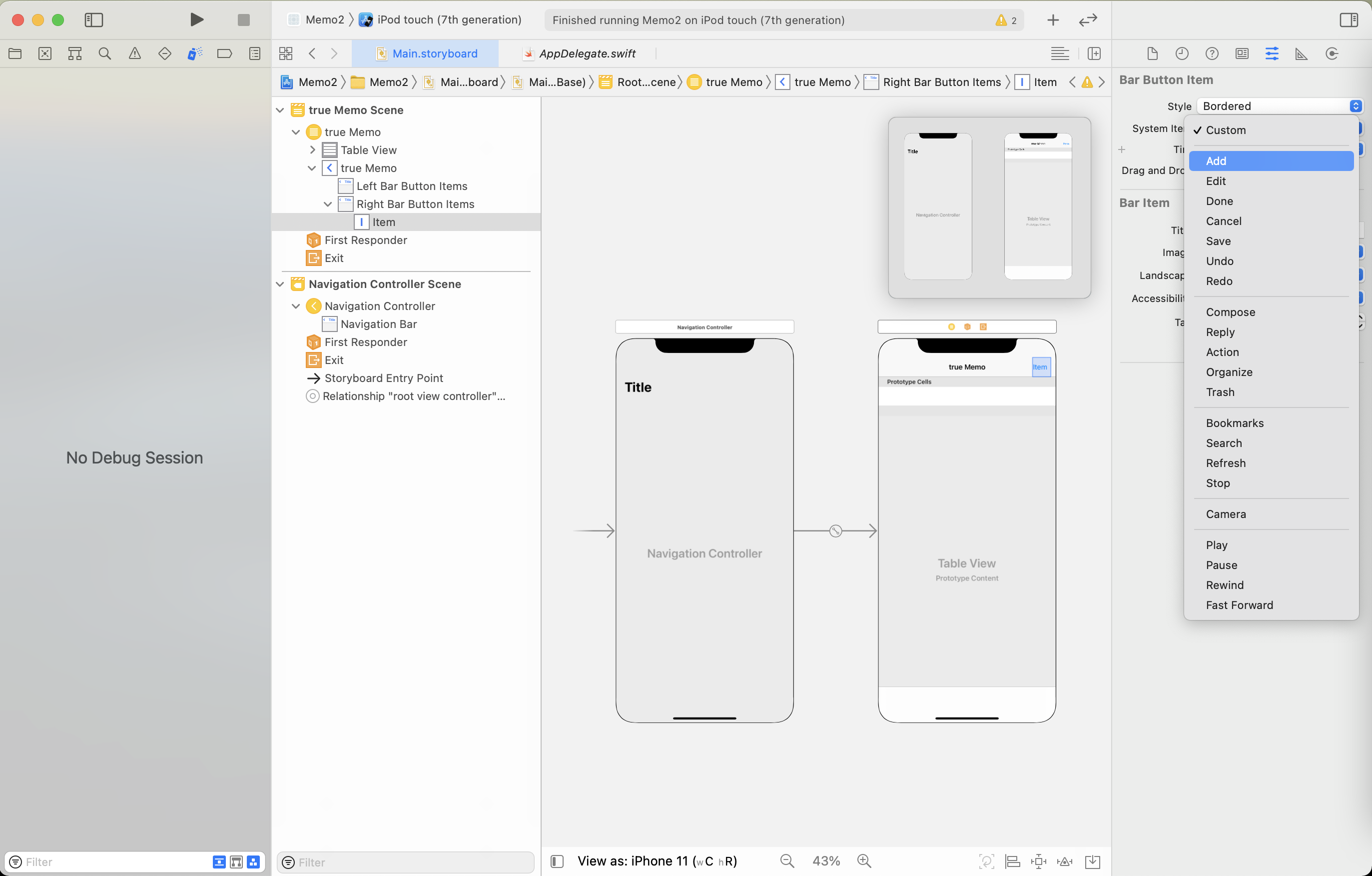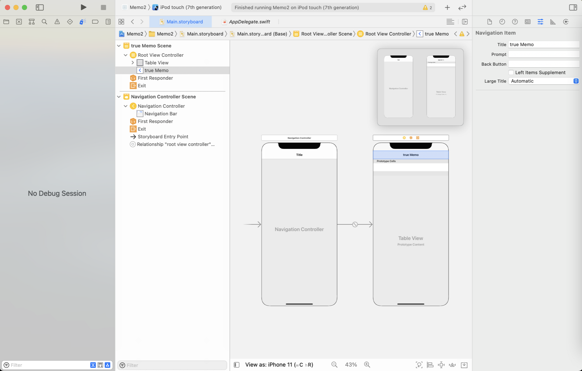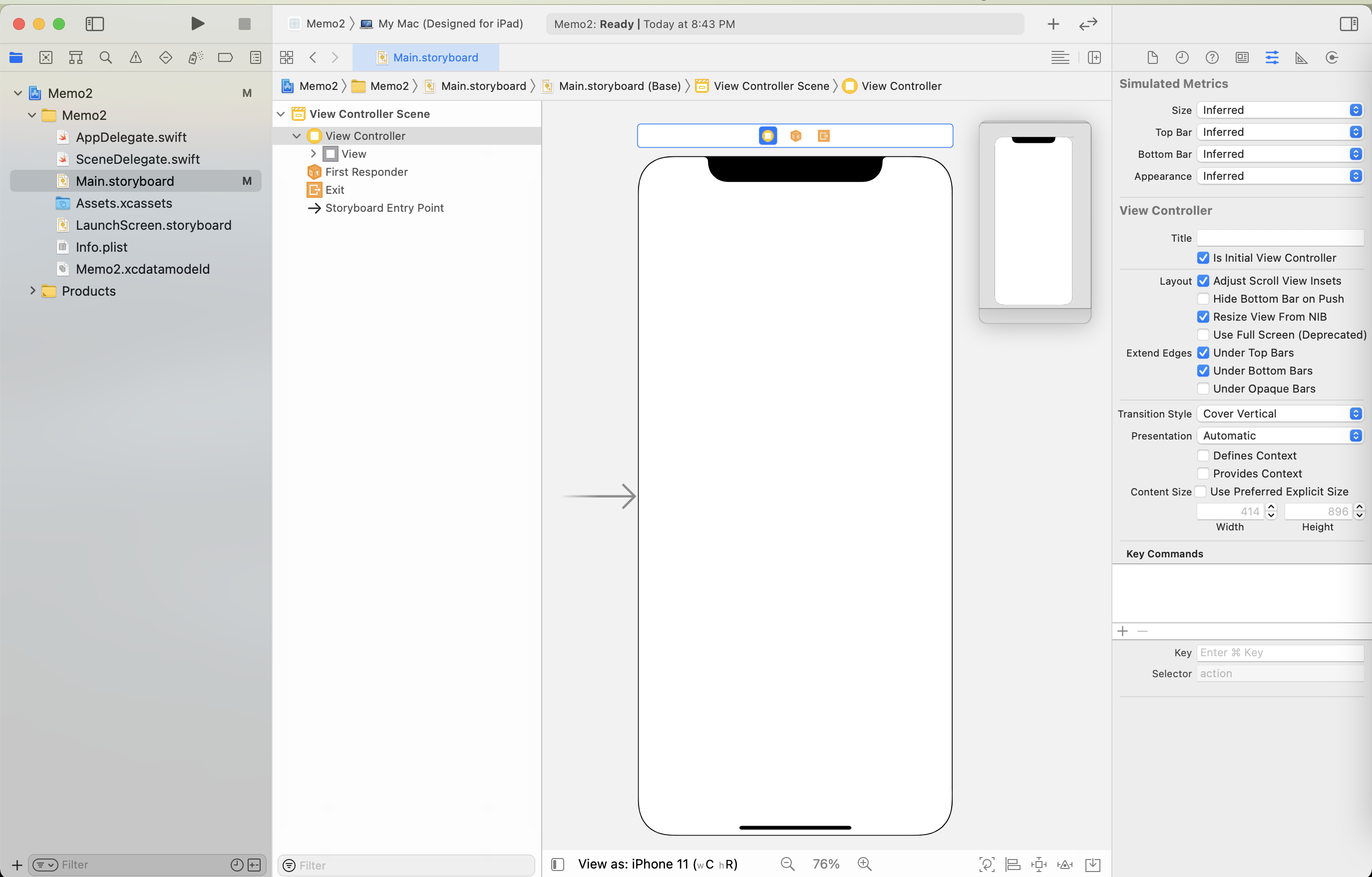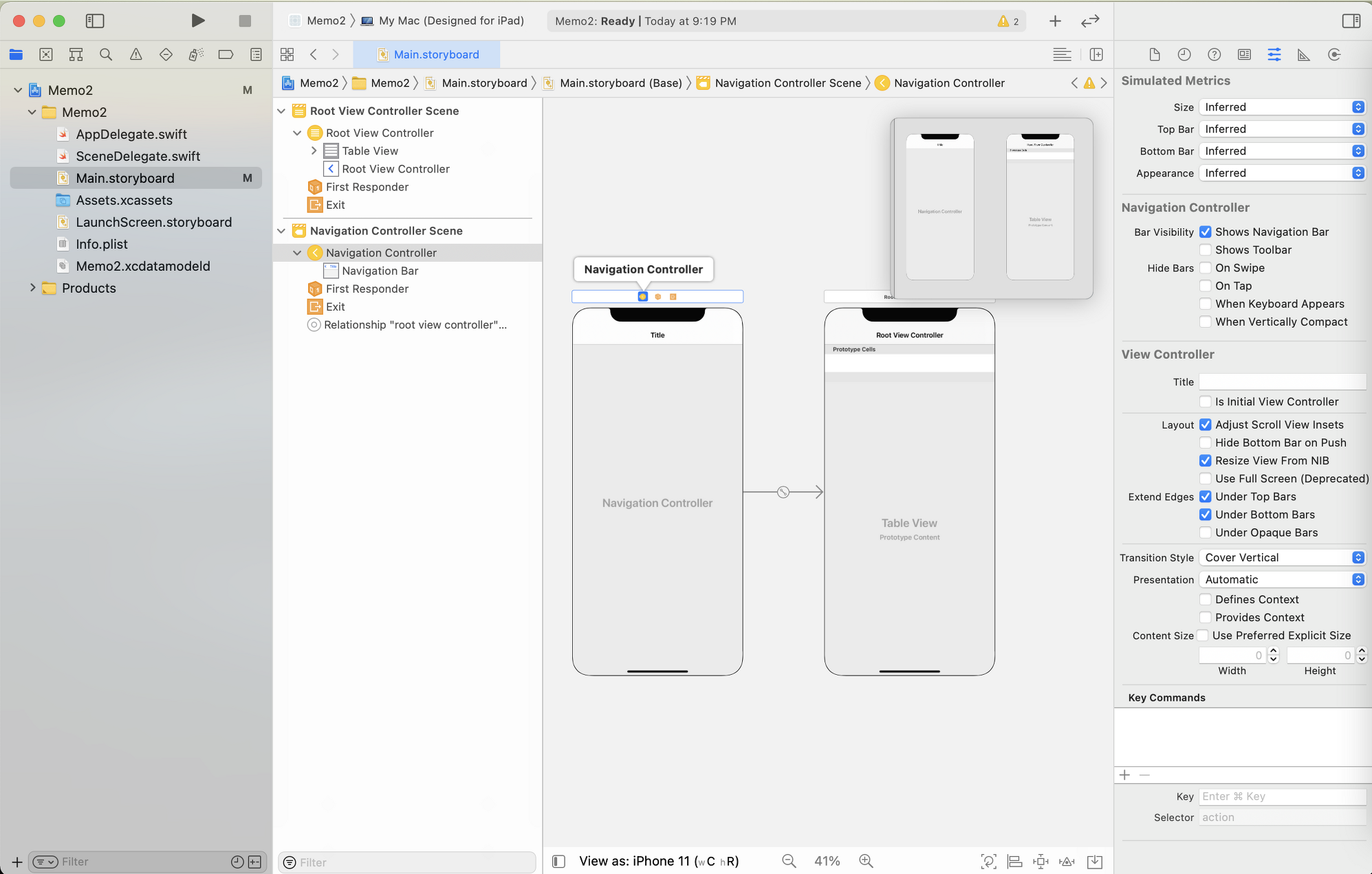 3-2. Navigation Controller๋ฅผ ํด๋ฆญํ๋ค ์ฐ์ธก Is Initial View Controller ์ฒดํฌ