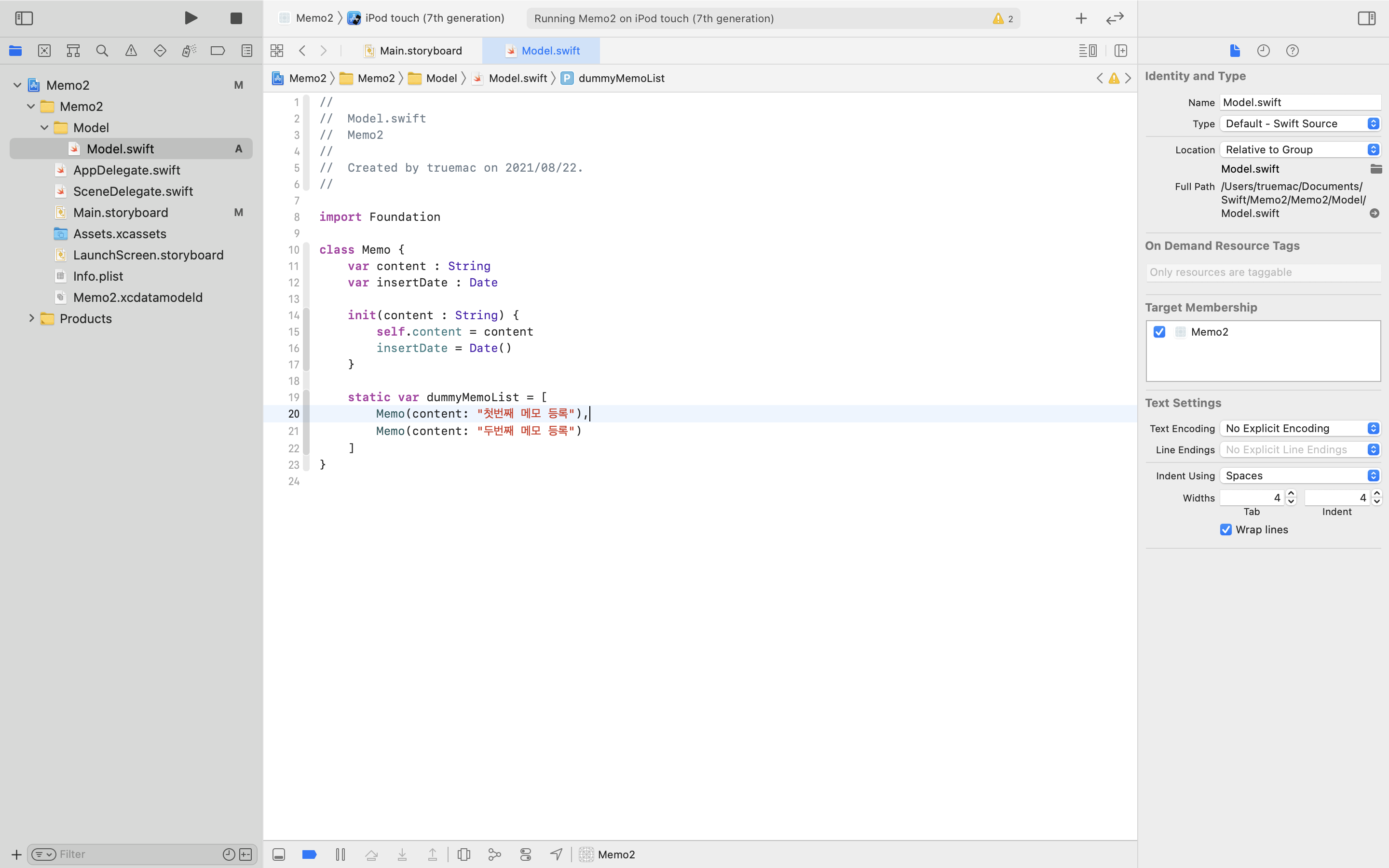 Memo(content: "๋๋ฒ์งธ ๋ฉ๋ชจ ๋ฑ๋ก")
