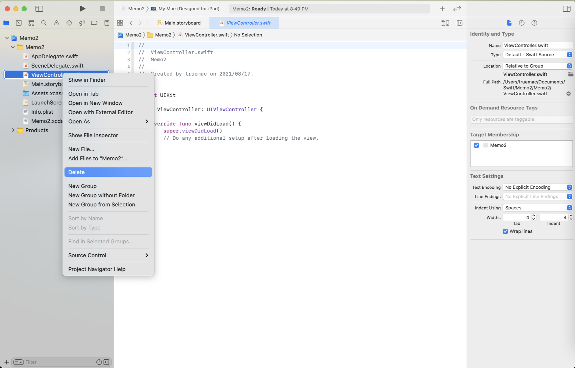 2-1. ViewController.swift - Delete