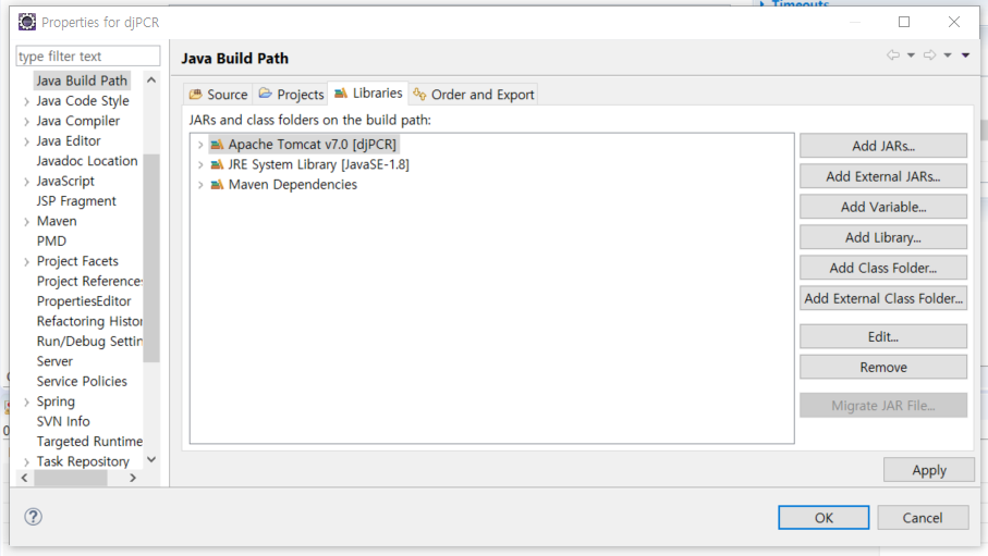 Server Library 더블 클릭 - Tomcat server runtime library 추가