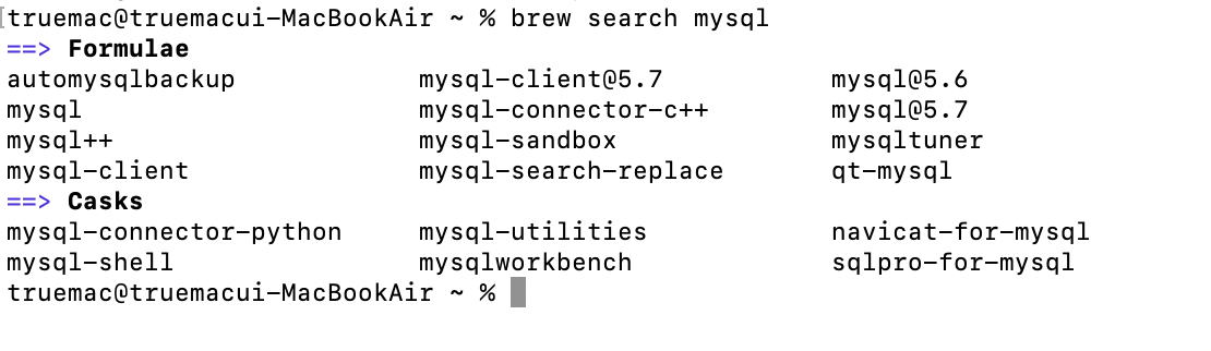 1. brew search mysql