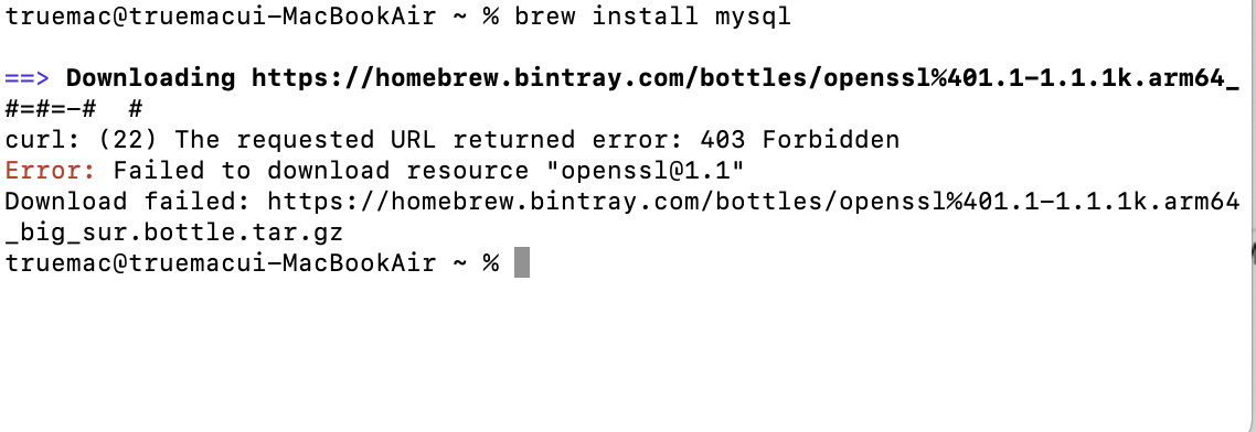 brew install ๋ช ๋ น์ด๋ฅผ ํตํด mysql์ ์ค์นํ ๋, ๊ฐ๋ ์ ์ ์๋ ์๋ฌ๊ฐ ๋ฐ์ํ ๋๊ฐ ์๋ค. openssl์ ์ฌ์ค์นํด๋ณด๊ณ git๊ณผ gcc ๋ฑ์ ๋ค์ ์ค์นํด๋ณด์๋ ํด๊ฒฐ ํ ์ ์์๋ ์ ์ด ์๋๋ฐ ์๊ฐ์ธ๋ก ๊ฐ๋จํ๊ฒ