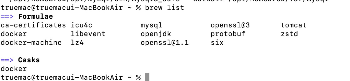5. brew list๋ก ๋ค์ด๋ก๋๊ฐ ๋์๋์ง ํ์ธ