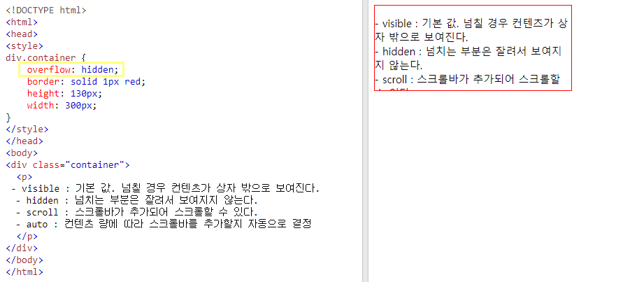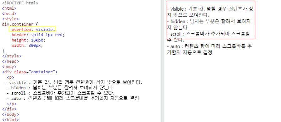 기본값. 사이즈를 넘 칠경 우 글이 상자 밖으로 보임.