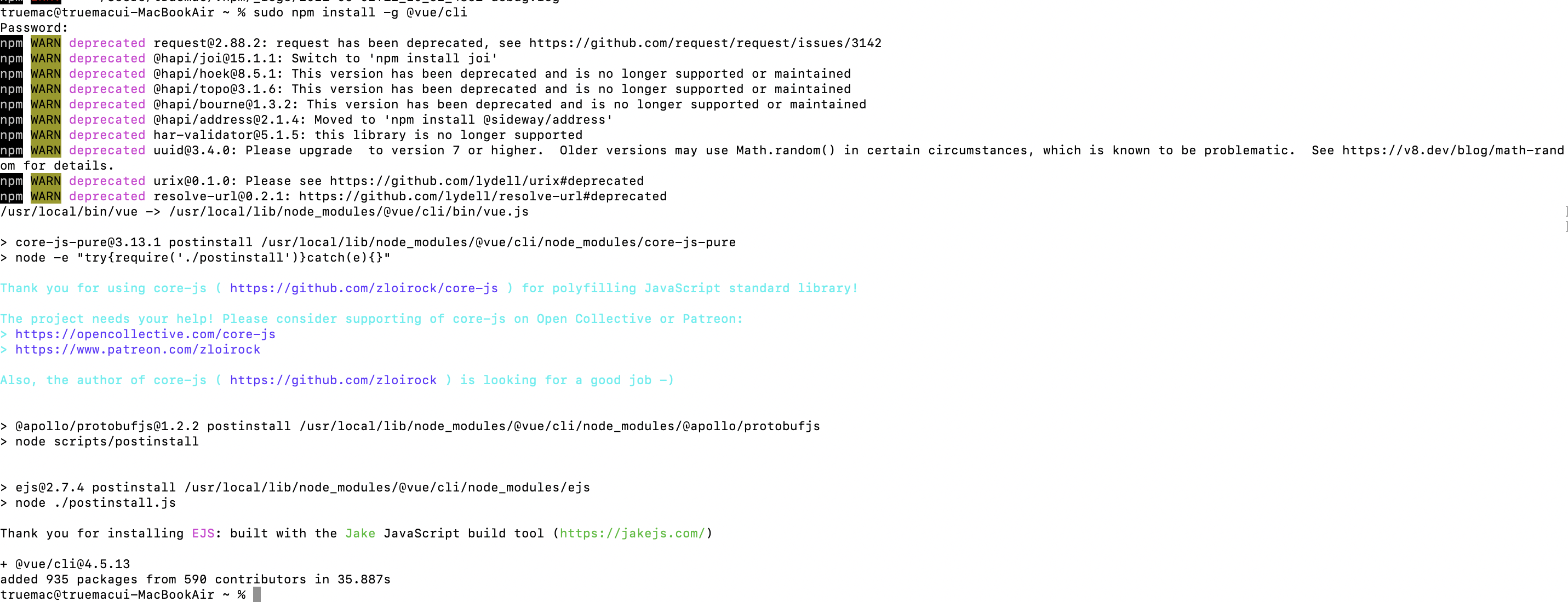 sudo npm install -g @vue/cli