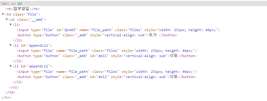 html ์ถ๊ฐ js var maxAppend = 1; $('.__add ._add').on('click',function(){ if(maxAppend >= 3){ alert("ํ์ผ ์ ๋ก๋ ์ต๋ ๊ฐ์๋ 3๊ฐ ์ ๋๋ค."); return; }else{ $('.__add').append(' ์ญ์ '); maxAppend ++;..