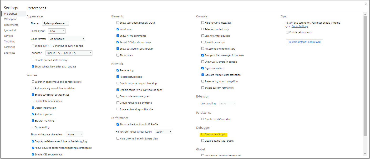 F12(개발자모드) 클릭 후 - 설정 - Debugger - Disable JavaScript 클릭